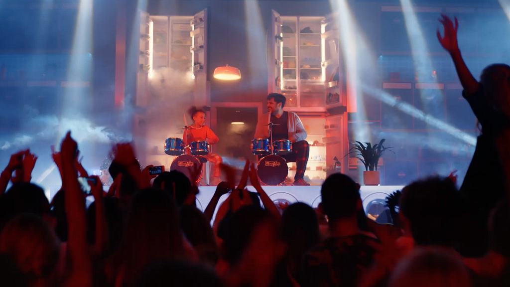 If anyone ever needs a good reference of how to do product placement well, use this ad. All brands are subtly placed within the sequence to highlight Argos’ catalogue to the audience; for example, the TV featuring promo, the washing machines as the stage, and the dry ice coming from the fridge and kettle - genius!