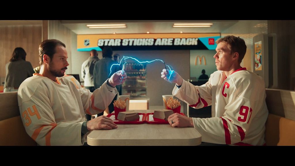 In collaboration with Cossette Communication, fast food chain McDonald’s has teamed up with NHL’s biggest stars to relaunch its Star Sticks meals with this playfully crafted, action-packed spot.