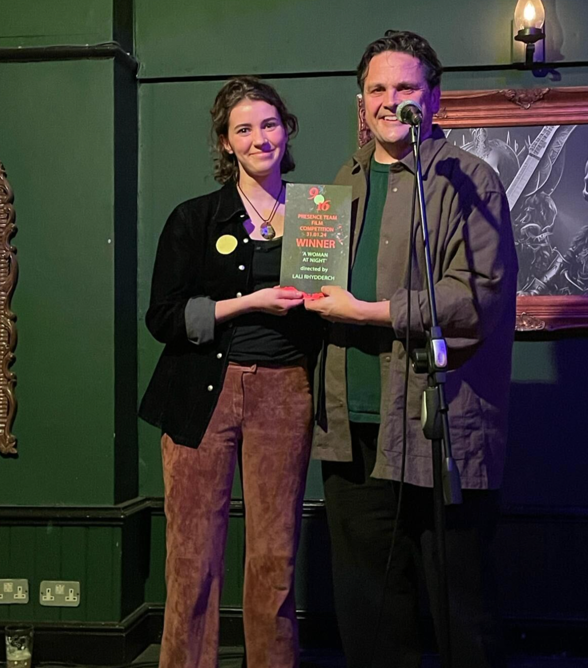 Above: Presence's Founder and EP, Danny Fleet [right], with director Lali Rhydderch, whose film A Woman At Night was the inaugural 9:16 winner.