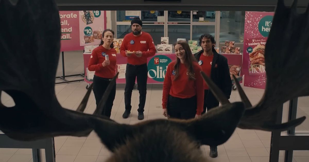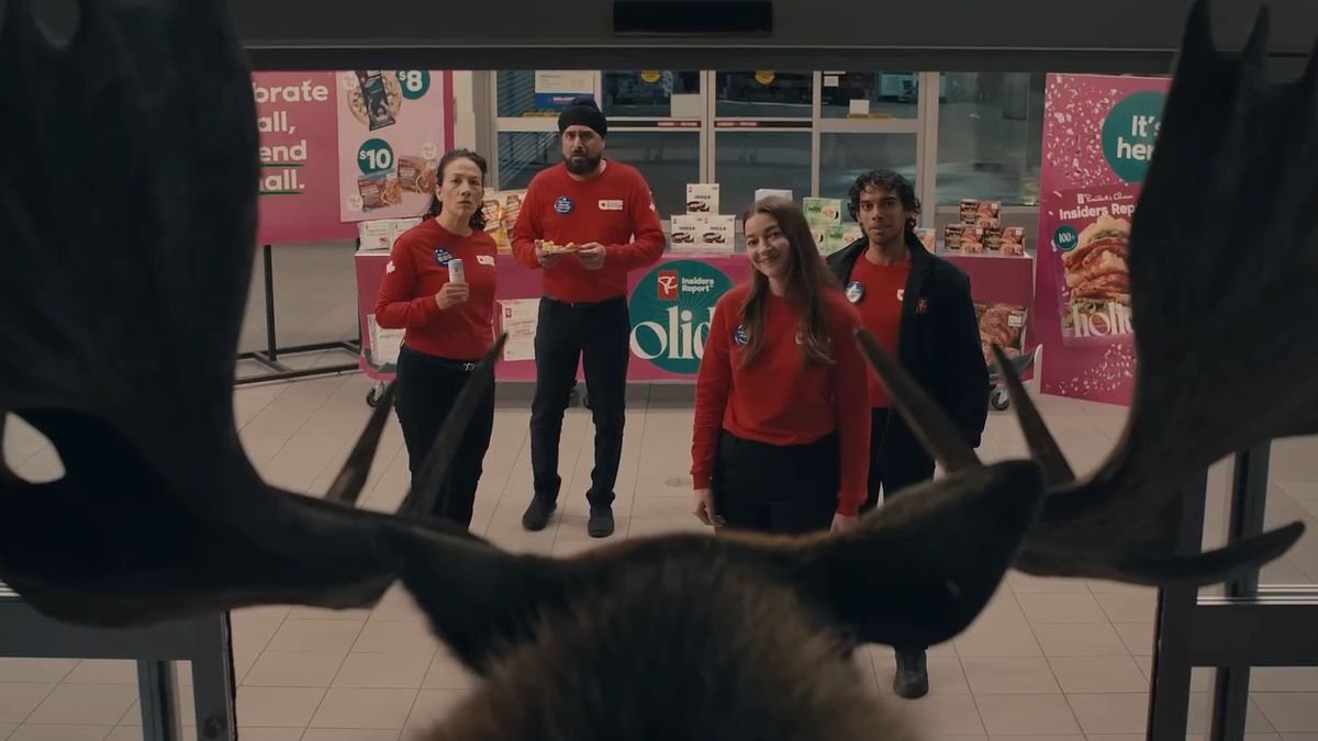 The hero film follows the solitary moose as it wanders through quiet suburban streets, gazing into homes where families gather to celebrate the season. Its quiet longing sets the emotional tone, building toward a hopeful shift when it eventually discovers a festive gathering at a Real Canadian Superstore. There, employees welcome it inside, transforming the store into a symbol of community, belonging, and shared celebration.