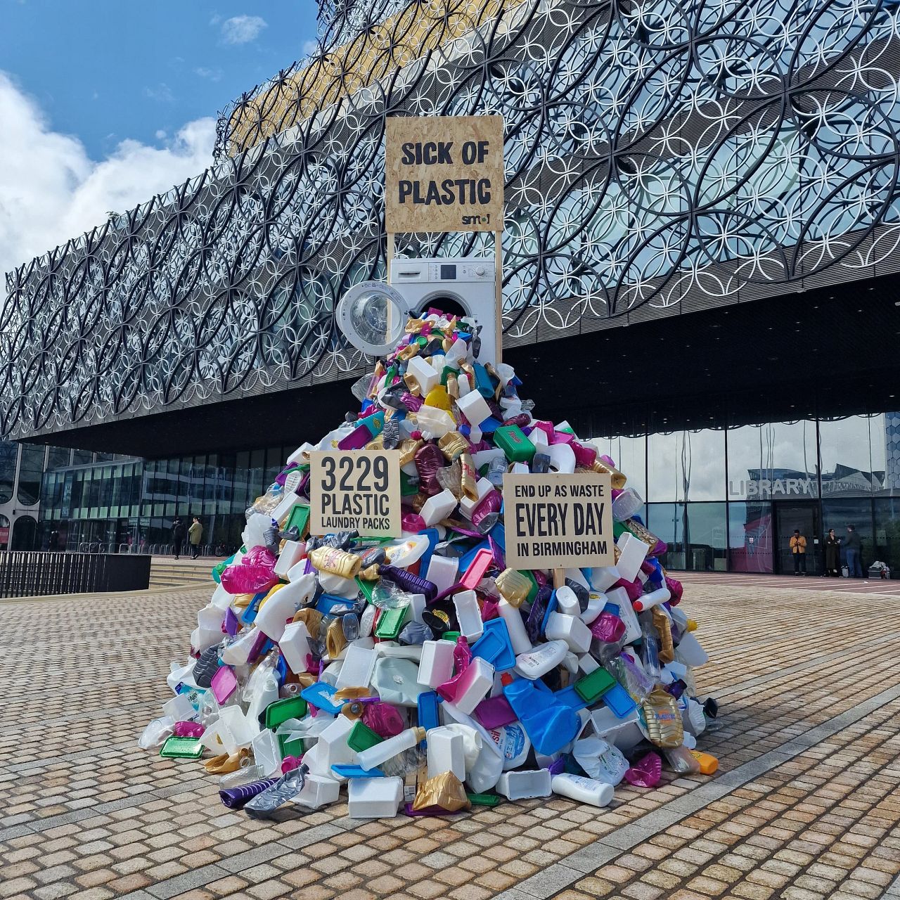 ABOVE: The ‘Sick of plastic’ campaign from eco products brand Smol was a sculpture in Birmingham depicting a washing machine vomiting laundry plastic. It highlighted the issue of unrecycled waste in the city and worldwide.