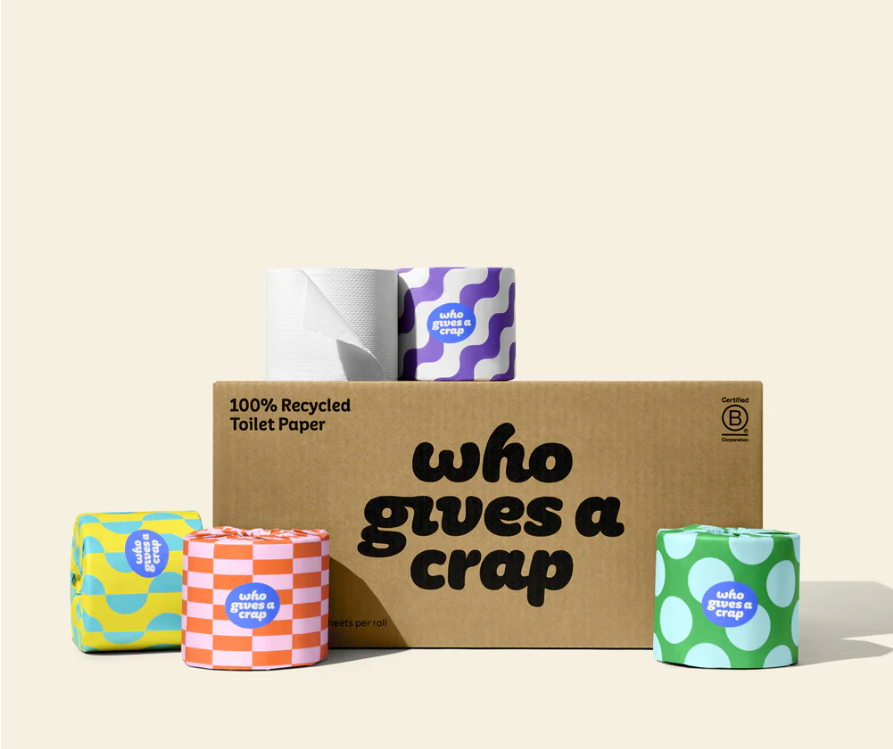 Above: Purpose-led brand Who Gives A Crap sells loo paper for those who do give a shit about the one million trees that are cut down every day to make traditional toilet paper.