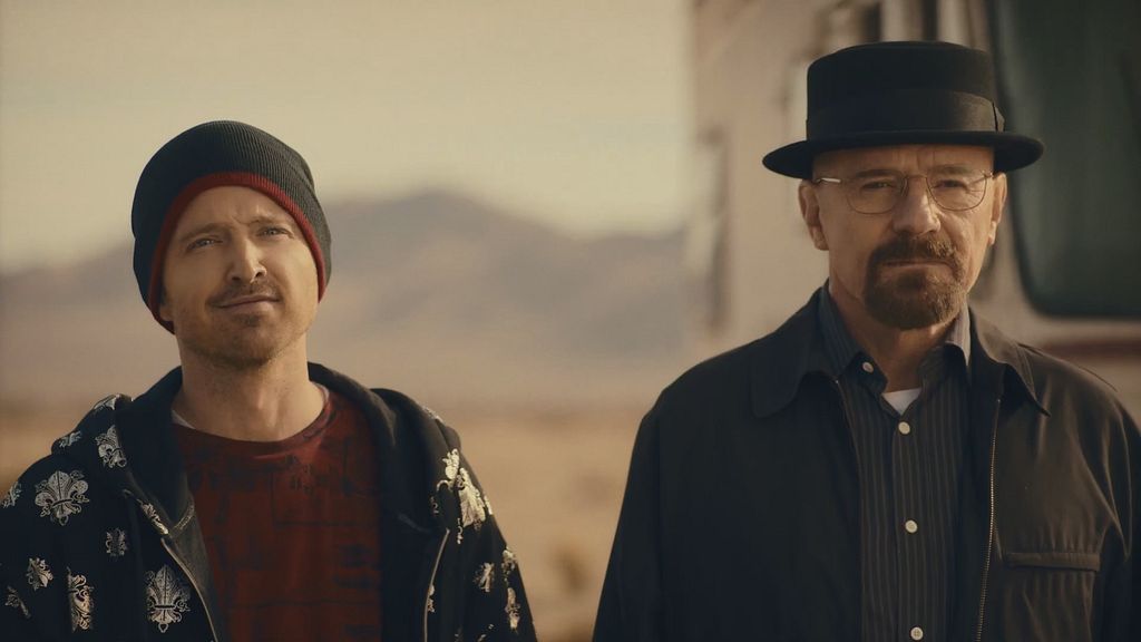 Above: Aaron Paul and Bryan Cranston returned to the screen as Jesse and Mr White in a Super Bowl spot for Pop Corners.